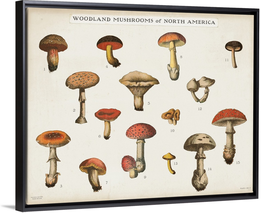 <p>Horizontal Woodland Mushrooms of North America chart with a white background.</p>