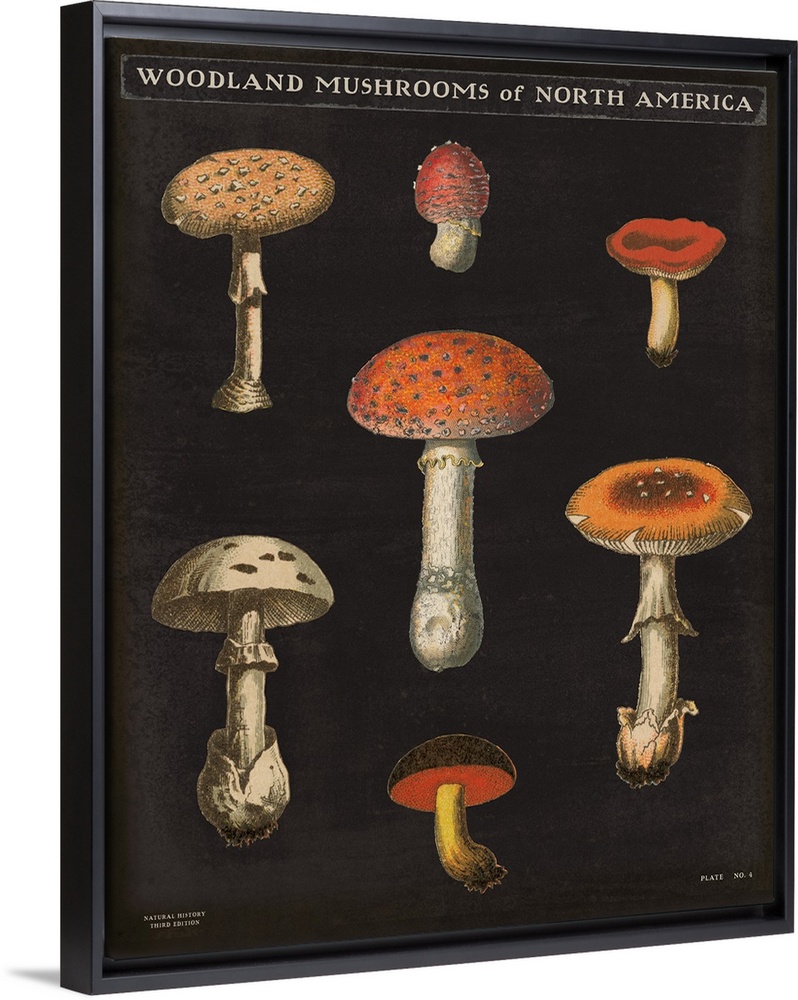 <p>Vertical Woodland Mushrooms of North America chart with a black background.</p>
