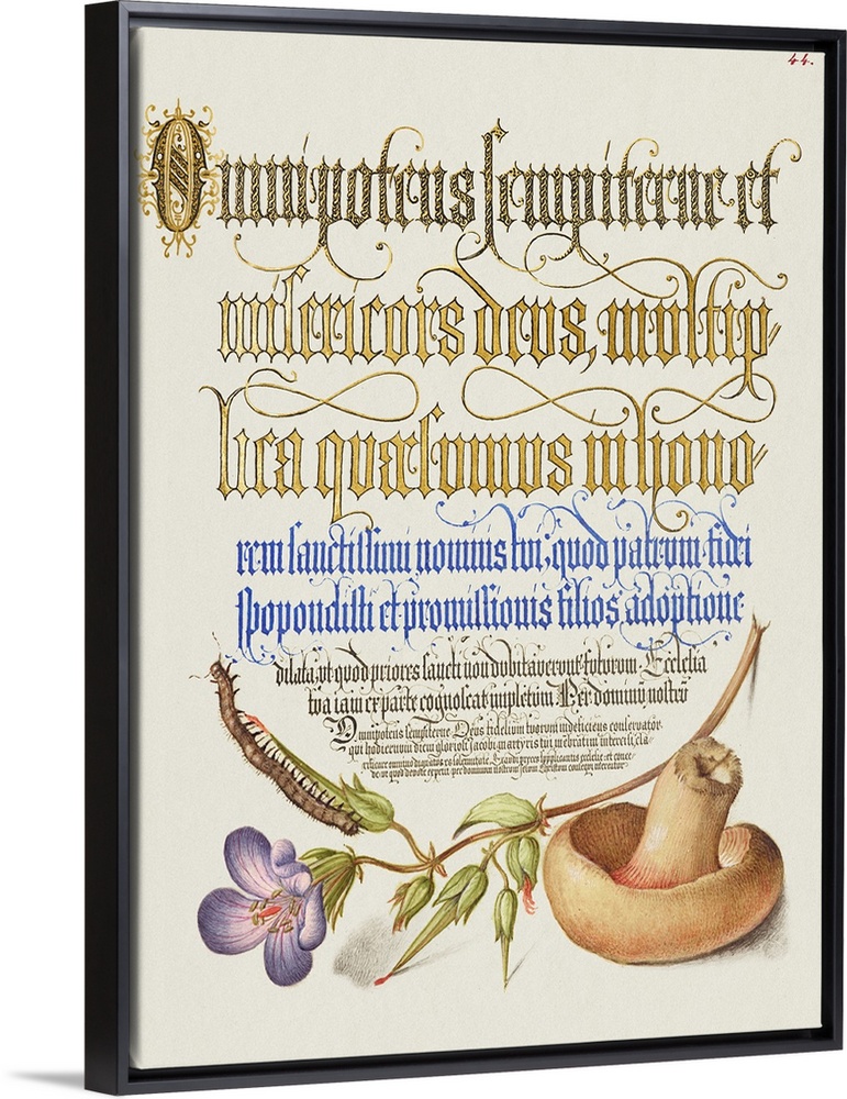 <p>Centipede, wood cranesbill, and mushroom from the model book of calligraphy (1561-1596) by Georg Bocskay and Joris Hoefnagel.</p>