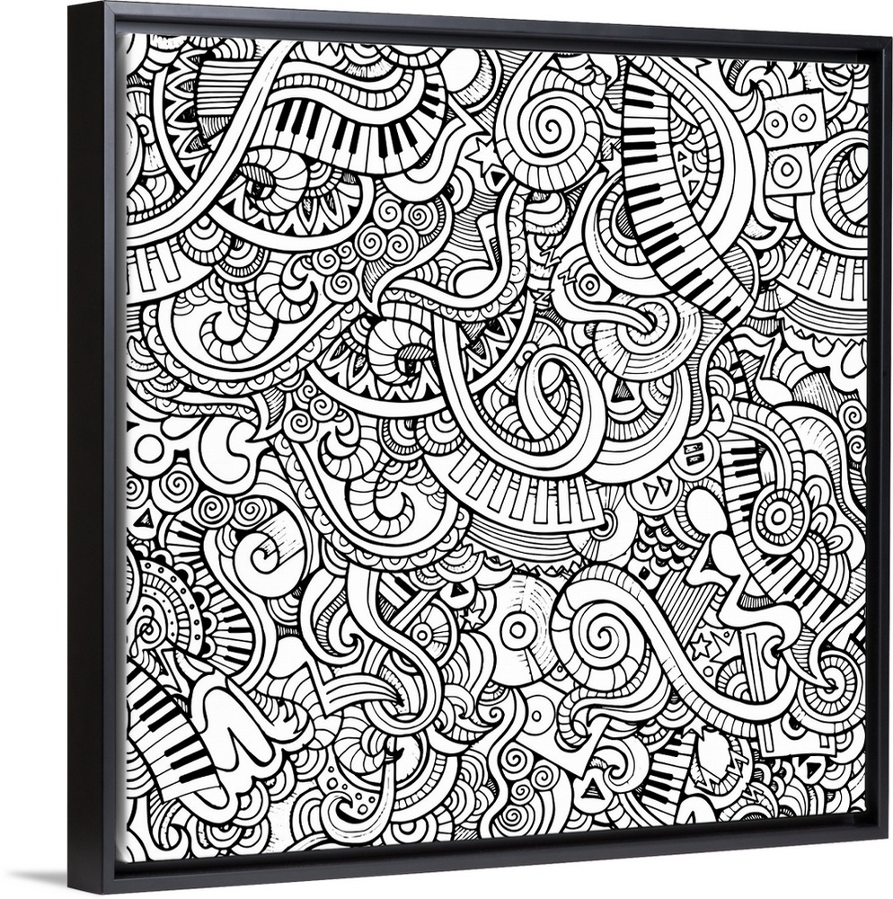 <p>A design featuring swirls with music notes and piano keys.</p>