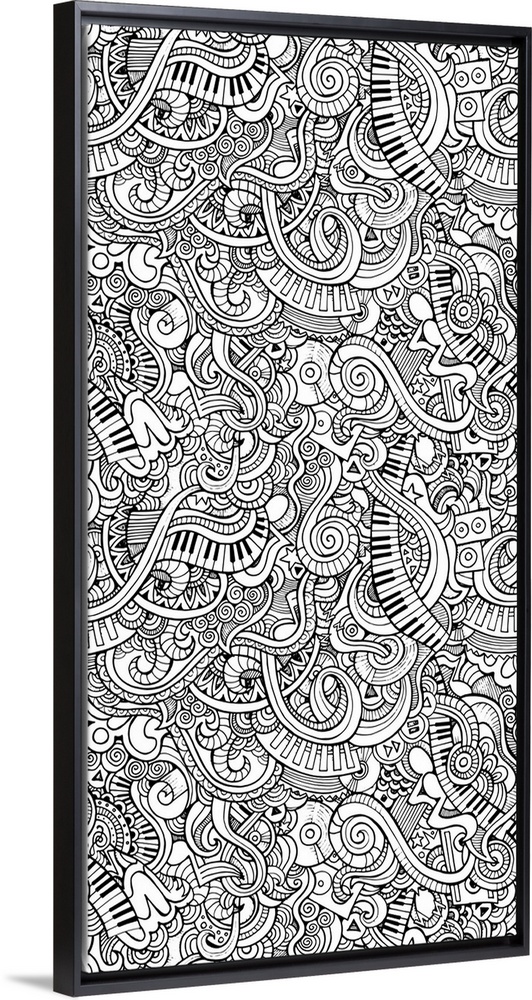 <p>A design featuring swirls with music notes and piano keys.</p>