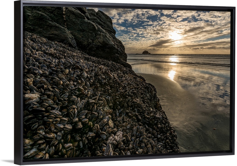 <p>Mussels and Barnacles on rock at sunset, Sand Dollar Beach, Plaskett Creek, Big Sur, California, USA</p>