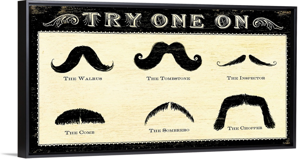 <p>Retro wall art of an identification guide to six types of mustaches with examples.</p>