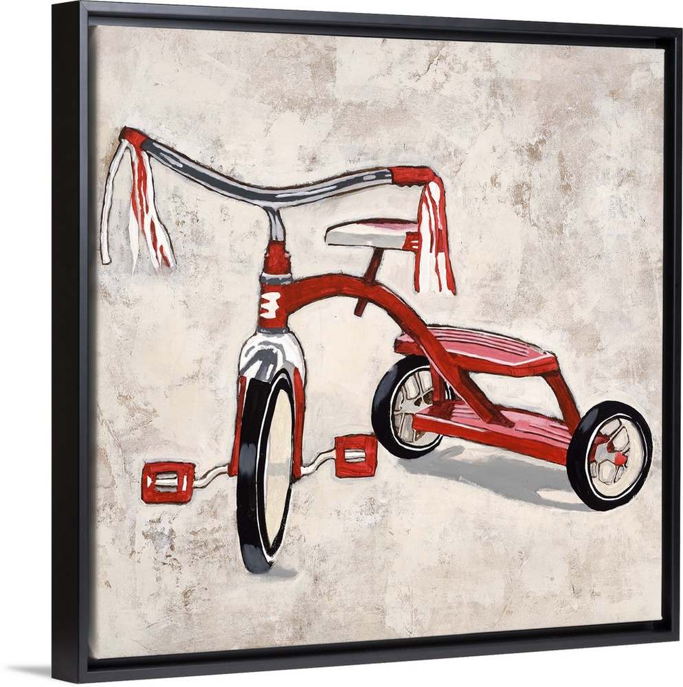 <p>Contemporary painting of a bright red tricycle.</p>