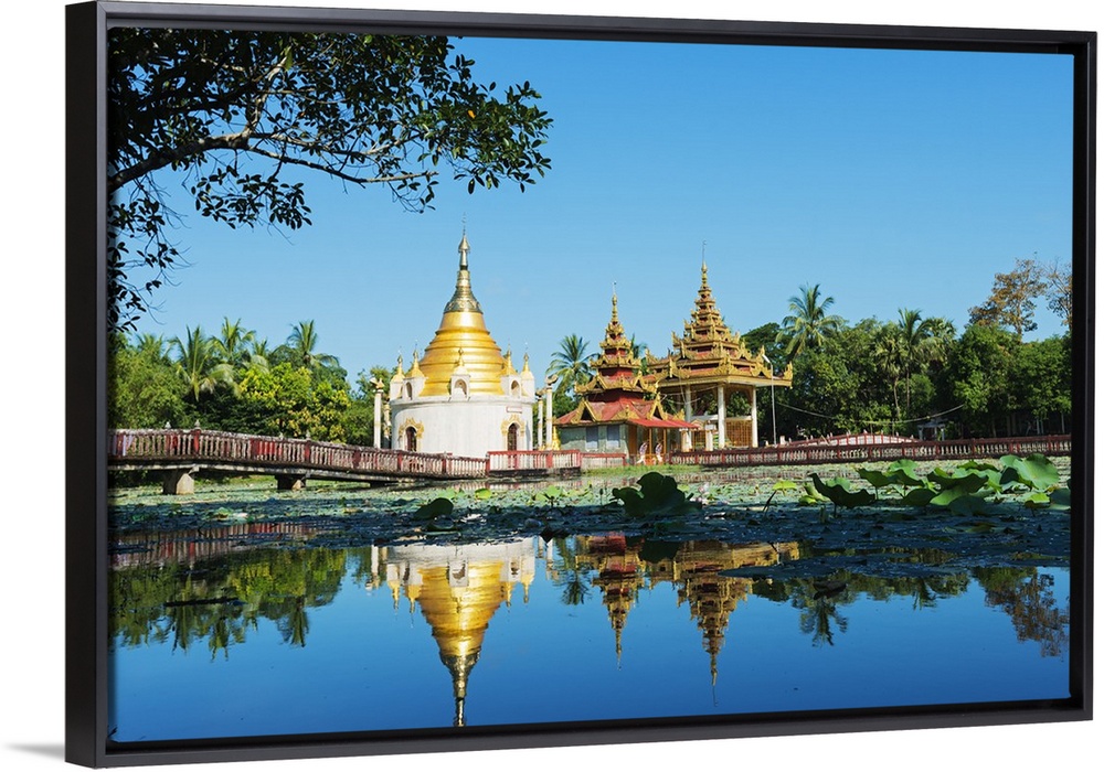 <p>South East Asia, Myanmar, Bago, lakeside pagodas.</p>