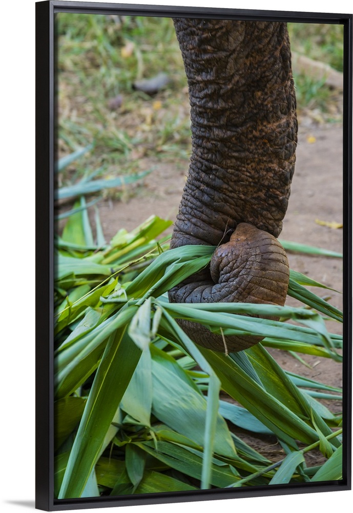 <p>Myanmar, Shan State, Near Kalaw. Green Hill Valley Elephant Camp. Elephant grabs sugar cane.</p>