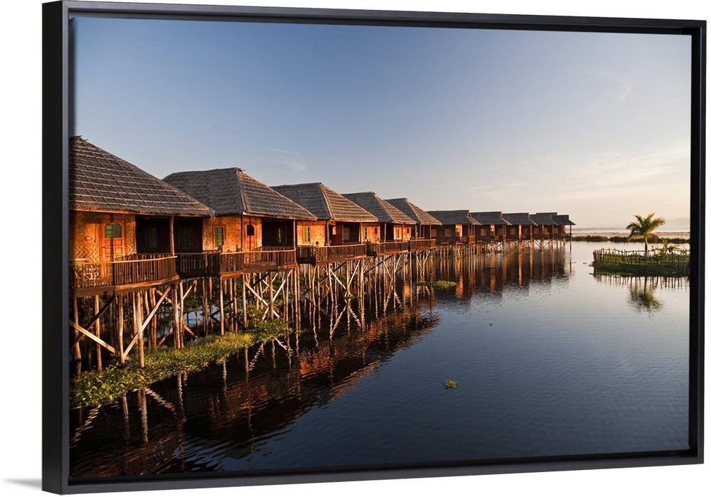 <p>Myanmar, Inle Lake. Golden Island Cottages, a resort for tourists owned by the Pa-O people, a collection of comfortable wooden huts on stilts, Inle Lake.</p>