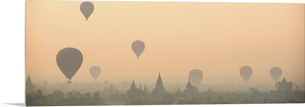 <p>Myanmar, Mandalay, Bagan, Hot air balloons over the ruins of Bagan in the early morning.</p>