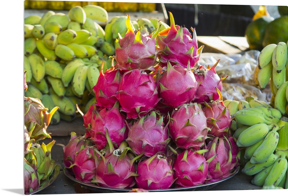 <p>Myanmar. Mt Popa. Dragon fruit for sale in a market.</p>