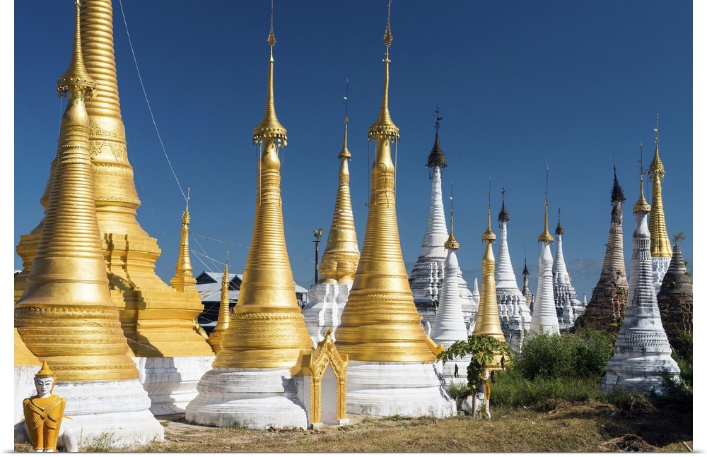 <p>Myanmar, Shan, Nyaungshwe, Pagodas at Inthein on Inle Lake.</p>