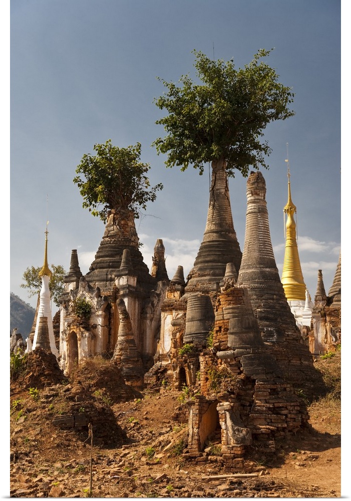 <p>Myanmar, Inle Lake, Indein. West of Ywama village on Inle Lake lie the crumbling ruins of Indein, ancient Buddhist shrines and stupas, overgrown with vegetation and very atmospheric.</p>
