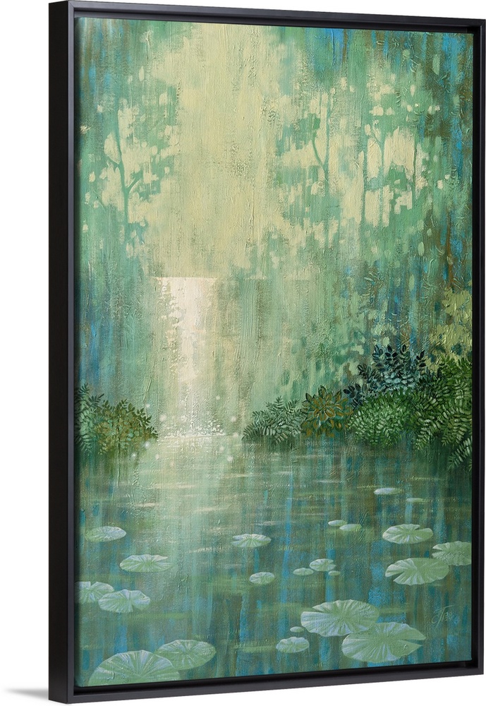 Art Contemporary and Modern Contemporary Art Green Wall Art Landscapes Lake Waterfall Painting Ekaterina Prisich