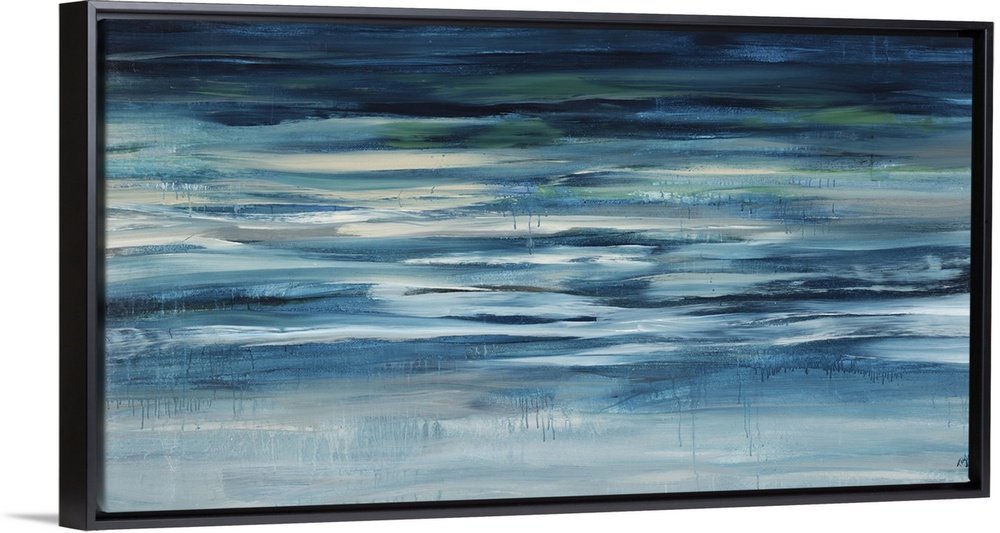 <p>Contemporary abstract painting of teal and light blue colored waterscape.</p>