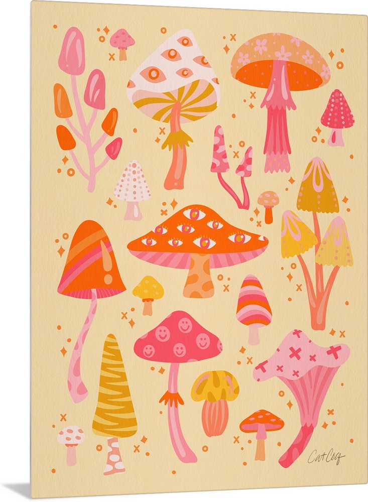 Art College Dorm Decor Plants and Flowers Cat Coquillette Decorative Art Florals Mushrooms Graphic Art Orange Wall Art