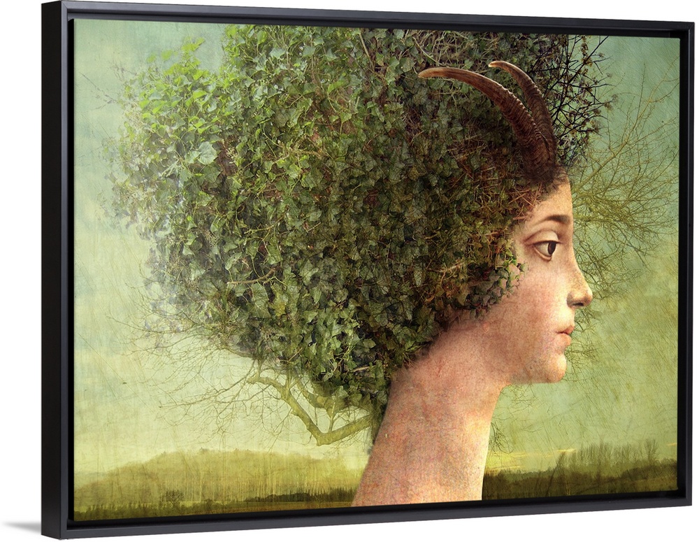 <p>A profile of a young woman who has a tree for hair.</p>