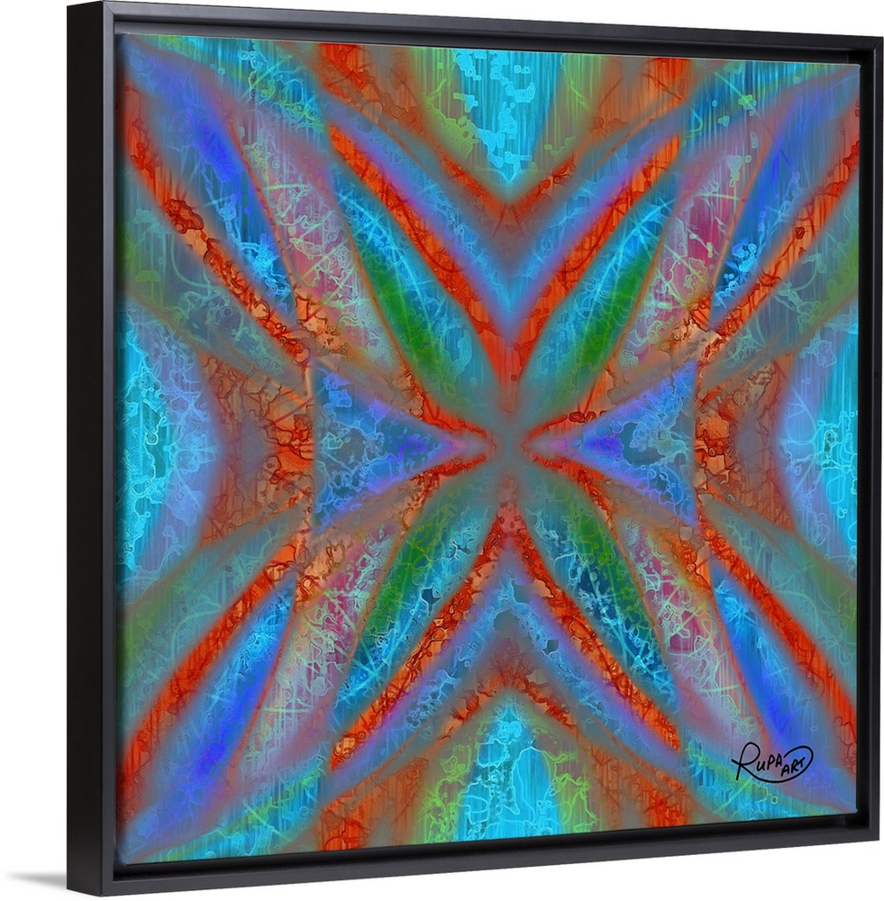 <p>Digital contemporary art of a kaleidoscopic pattern of neon red, blue, and orange colors.</p>