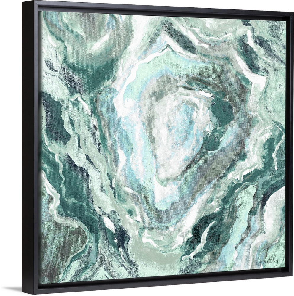 <p>Square abstract painting of quartz showing the agate in shades of green, blue, and white.</p>