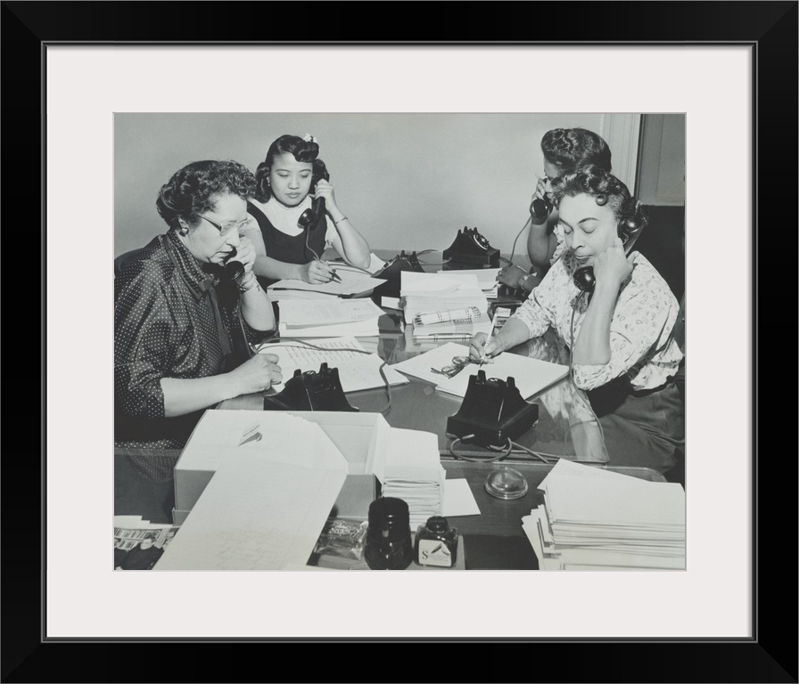 <p>NAACP women during a membership campaign New York City, May 1955. The were recruiting new members on the first anniversary of the Brown v. Board of Education Supreme Court decision. New York City, May 1955.</p>