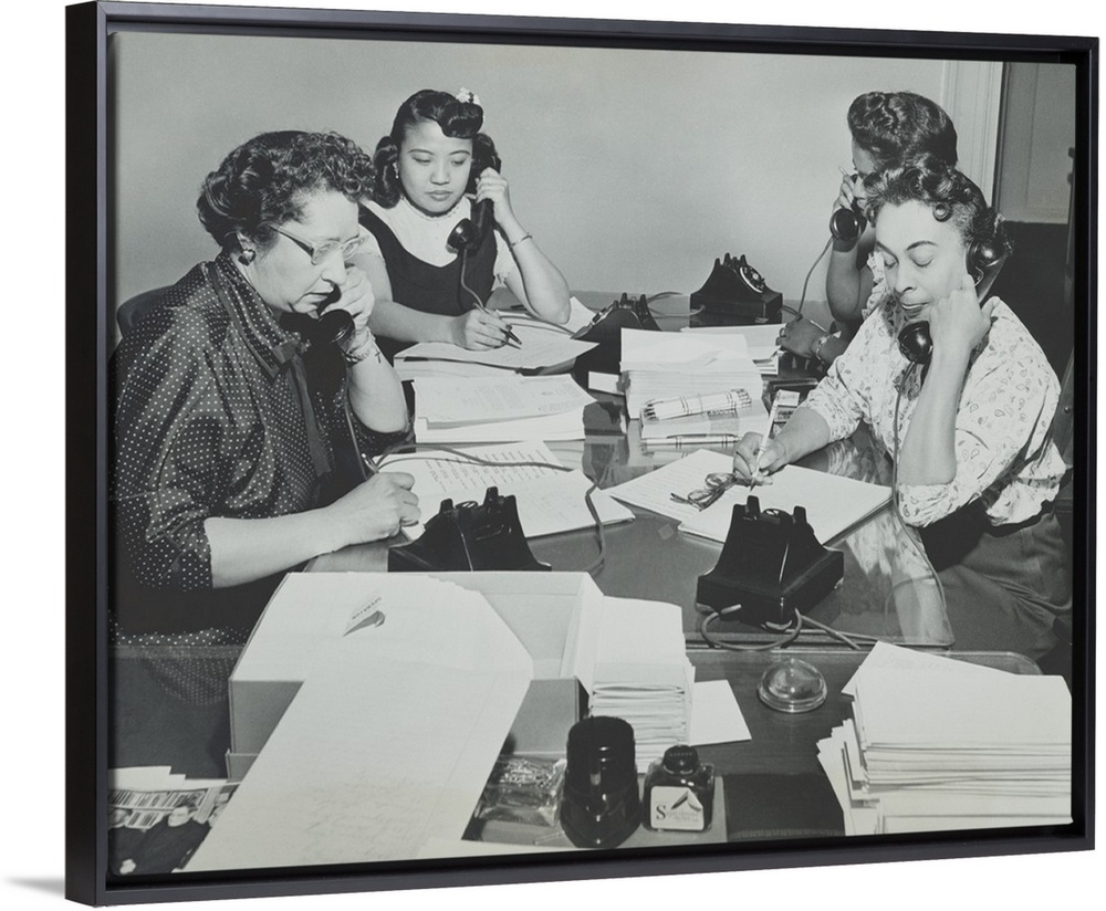 <p>NAACP women during a membership campaign New York City, May 1955. The were recruiting new members on the first anniversary of the Brown v. Board of Education Supreme Court decision. New York City, May 1955.</p>