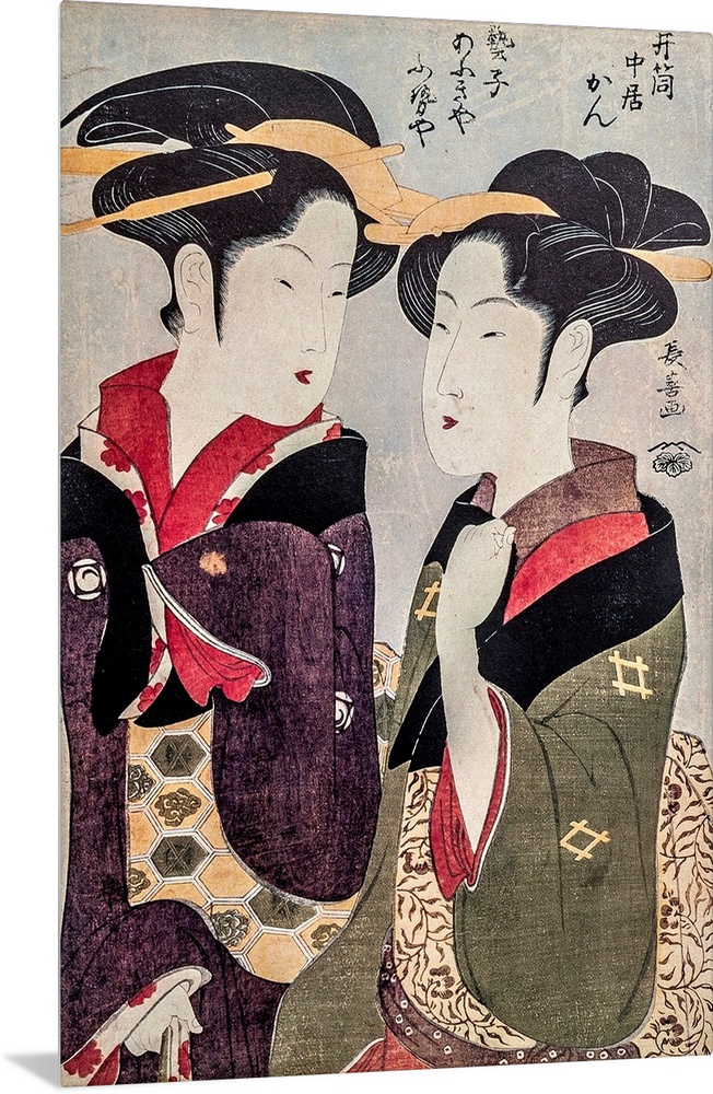 <p>Nakai Kan and geisha Fuseya, Eishosai Choki. Traditional Japanese engraving Ukiyo-e.</p>
