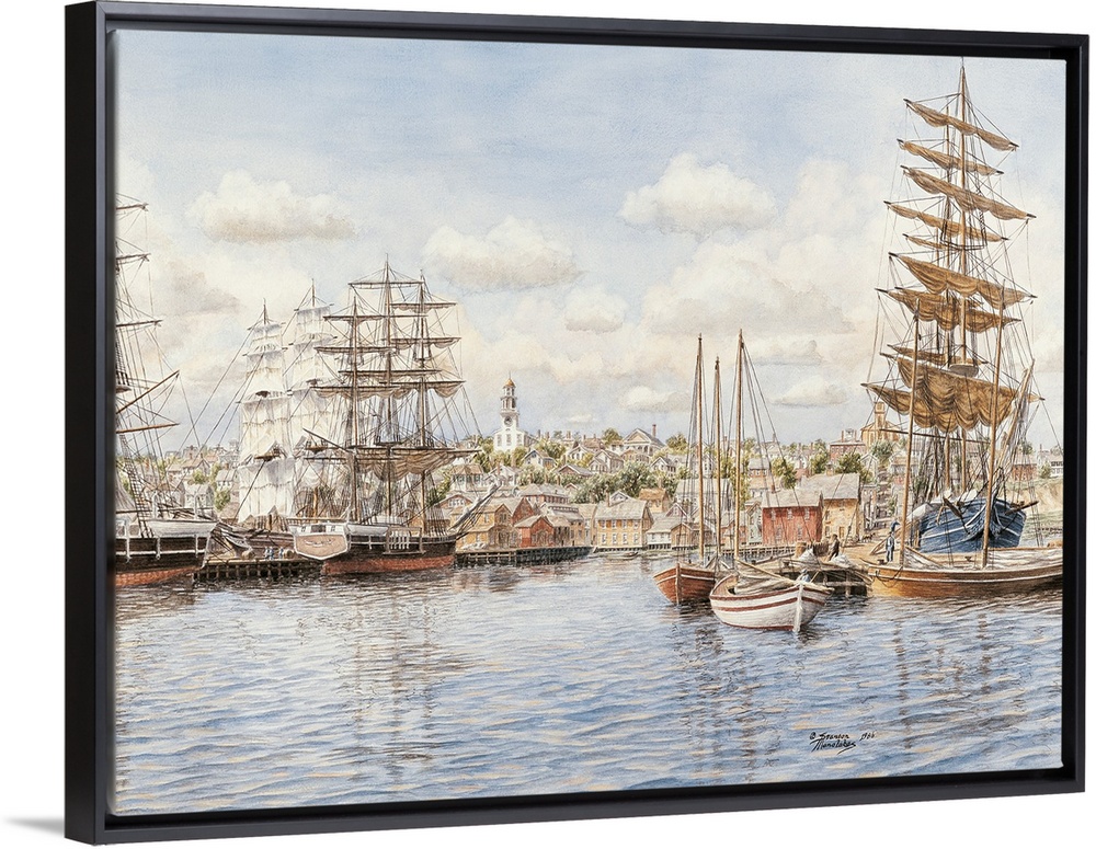 <p>Contemporary painting of a harbor filled with high masted ships.</p>