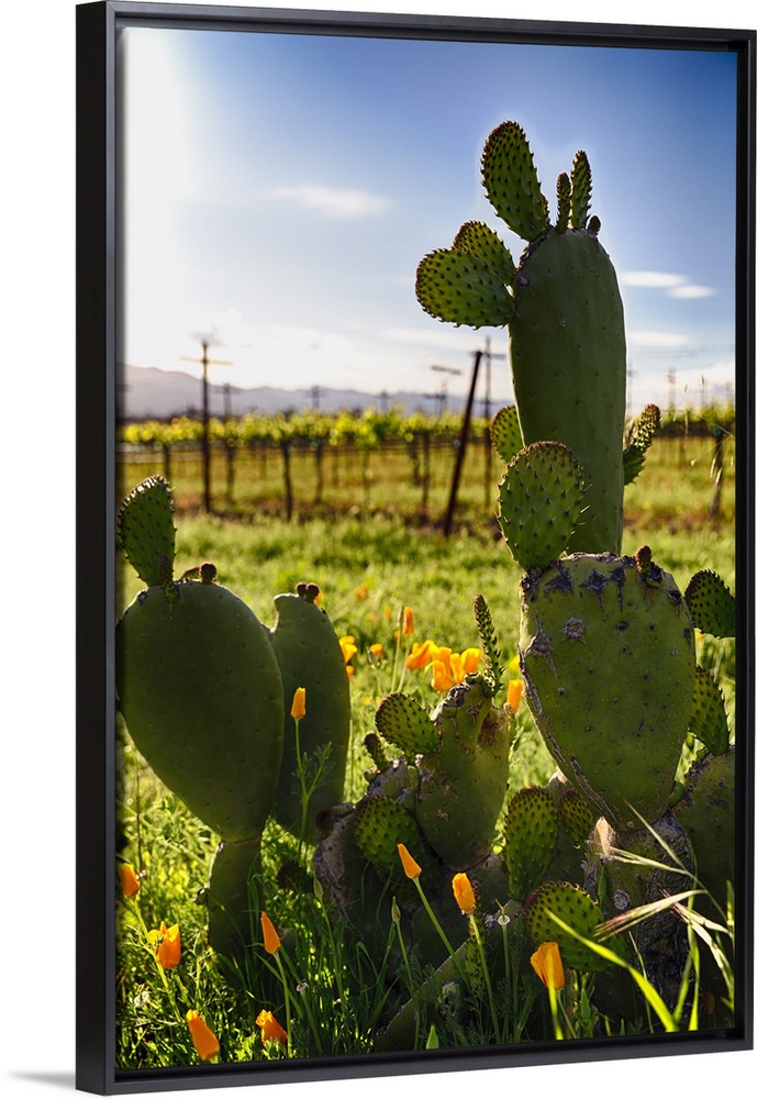 <p>Close Up View of Cactus and Yellow Poppies, Napa Valley, California</p>