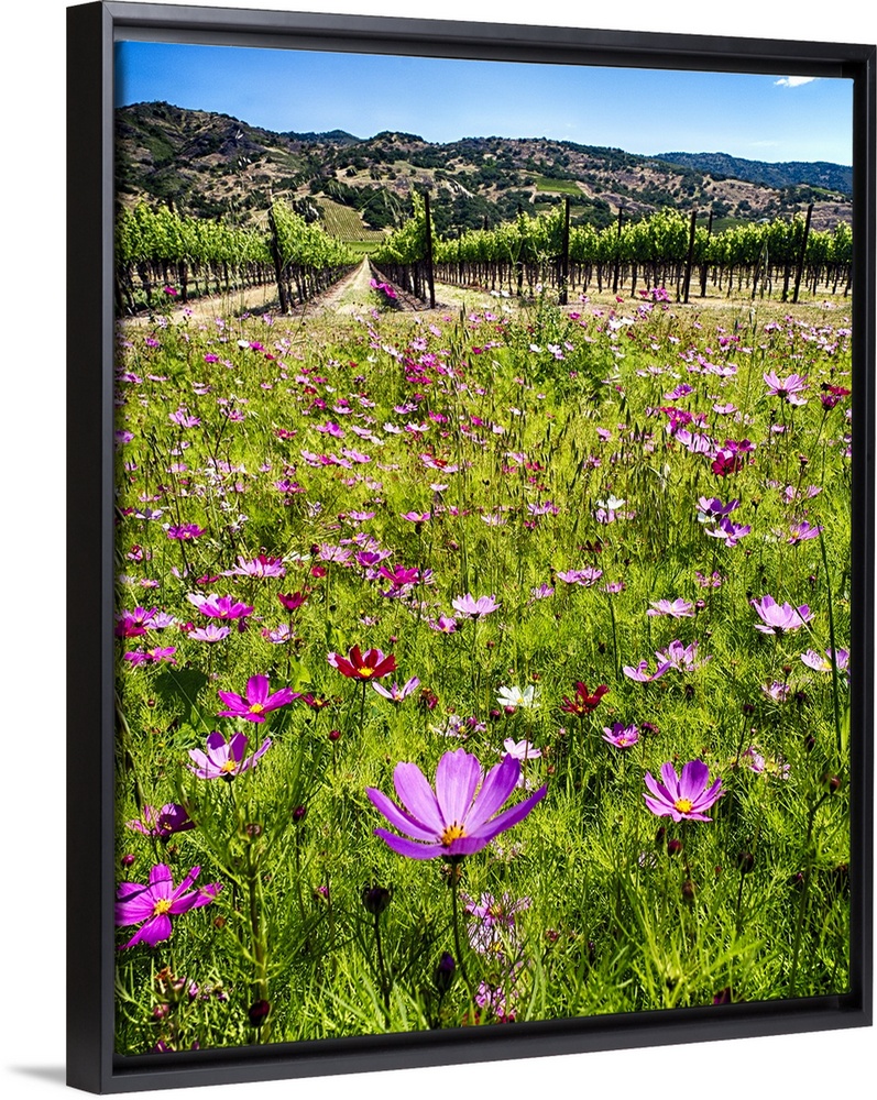 <p>Spring Wildflowers and Row of Grapevines, Napa Valley, California</p>