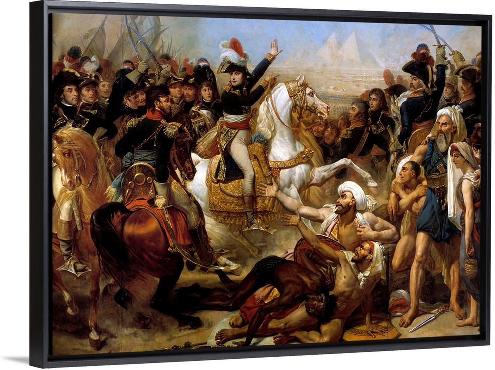 <p>Campaign of Egypt (1798-1801) : Napoleon Bonaparte haranguing the army before the Battle of the Pyramids, July 21, 1798. Painting by Antoine Jean Gros (1771-1835) oil on canvas, 3,89x 3,11 m. Castle Museum, Versailles, France</p>