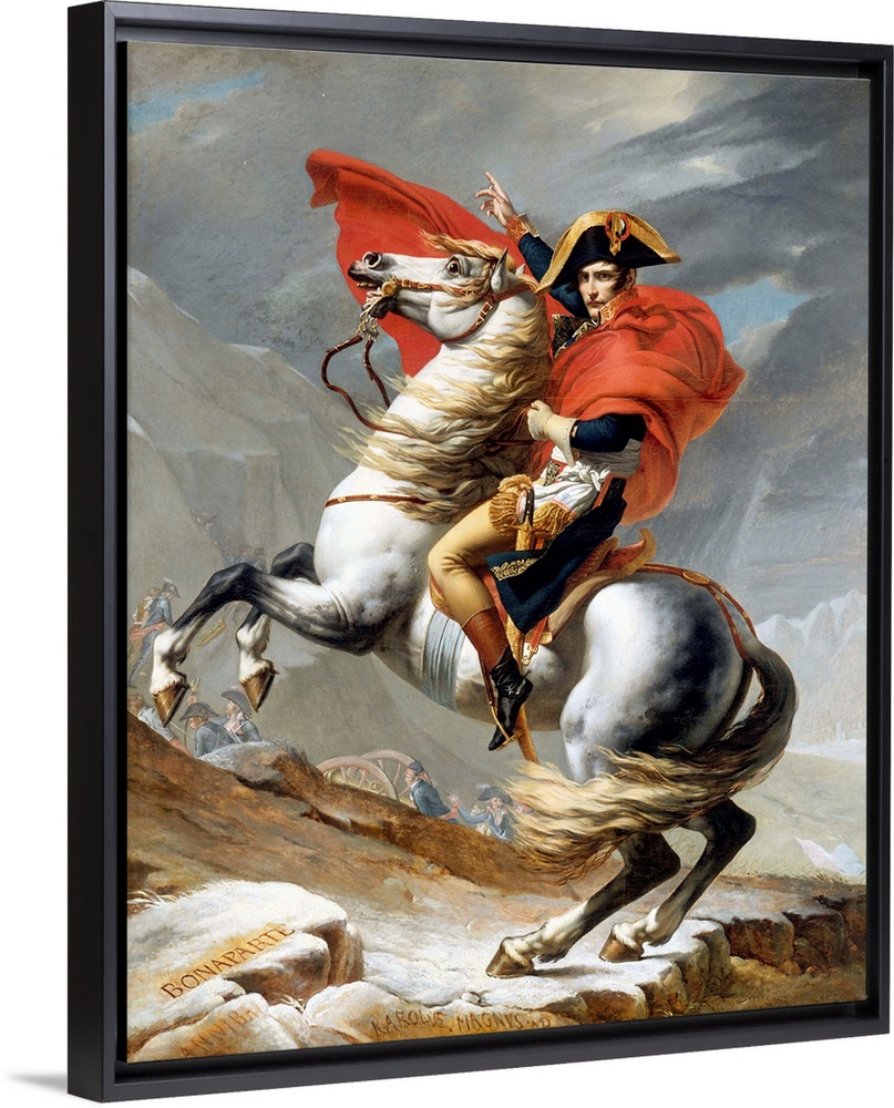 <p>Napoleon Crossing the Saint-Bernard Pass, 20 May 1800. 1801-1802. Oil on canvas. 232 x 271 cm (91.3 x 106.7 in). Musee de l'Histoire de France, Versailles, France.</p>