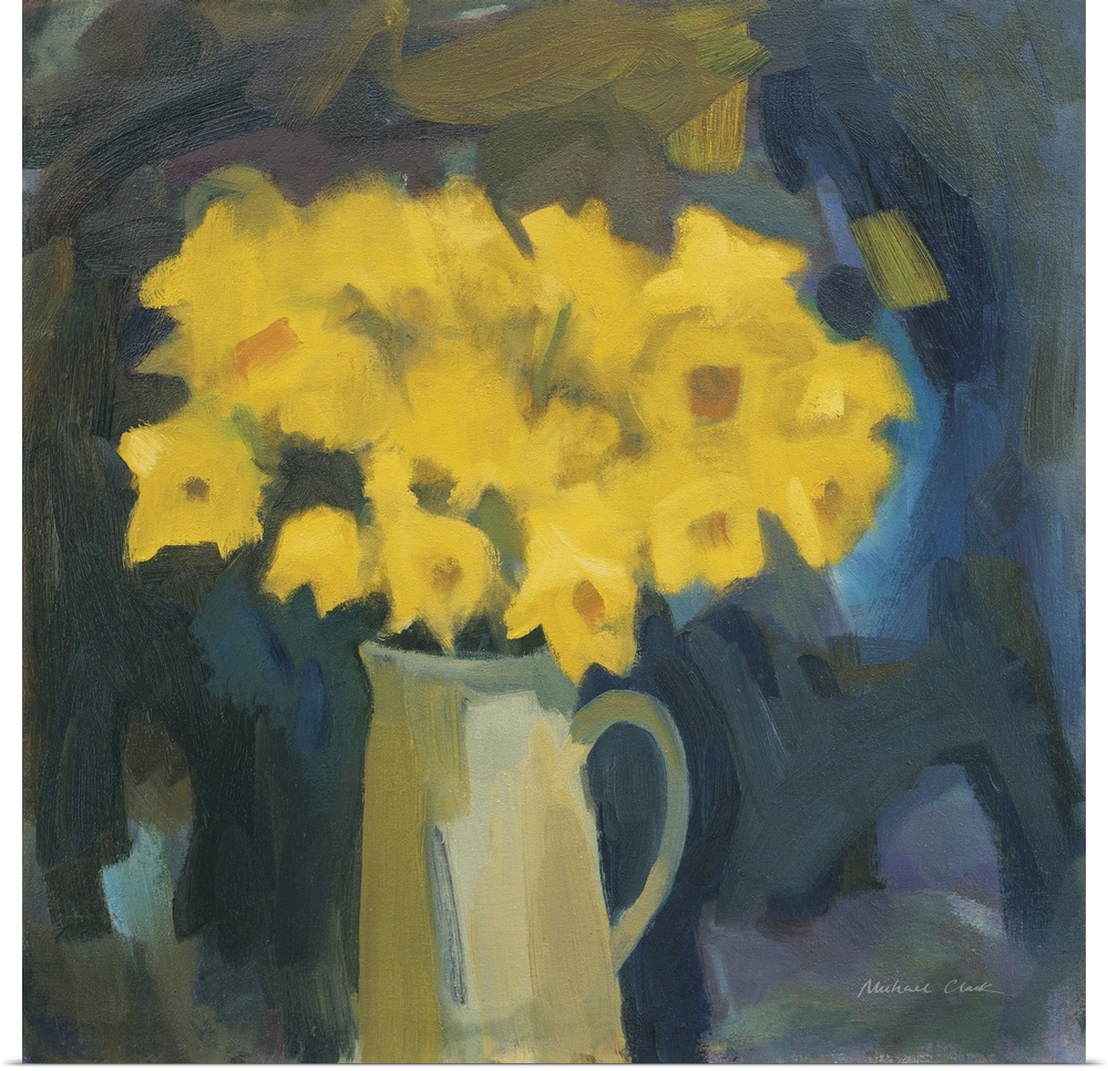 Art Transitional Michael Clark Contemporary Art Midnight Flora Florals Daffodil Painting Still Life