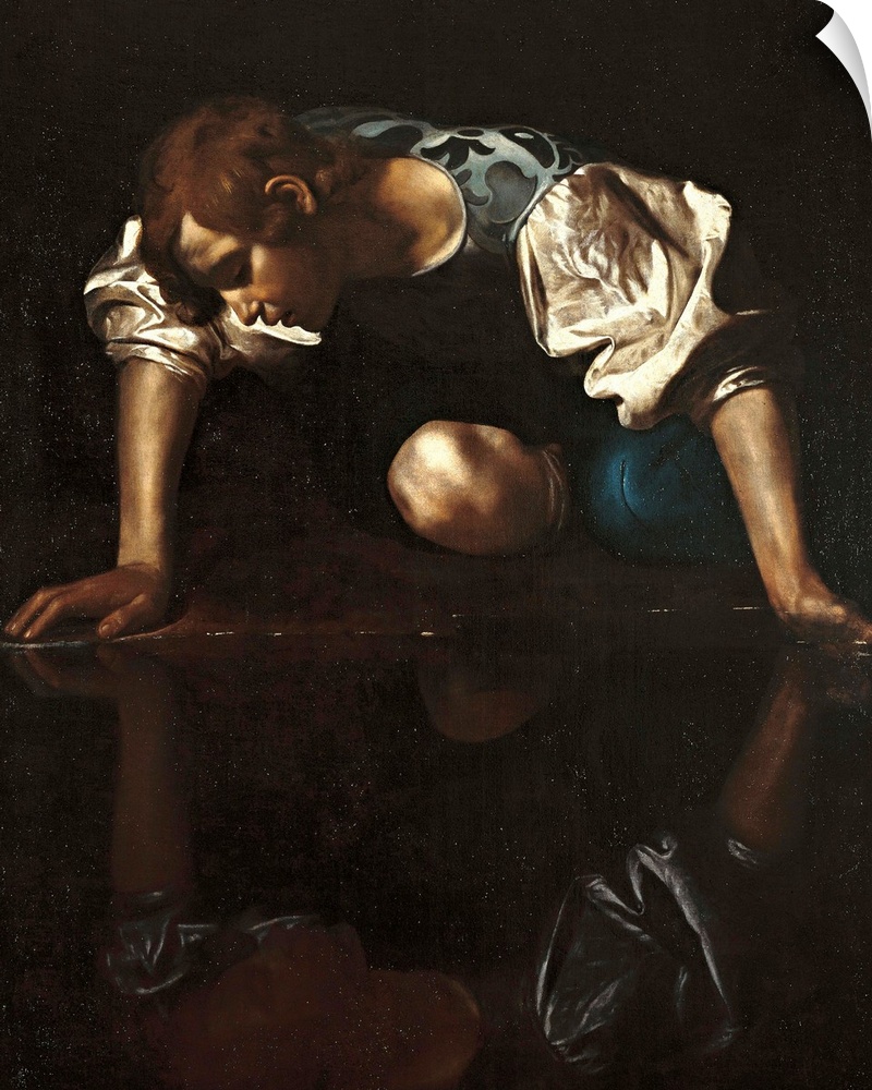 <p>Narcissus, by Michelangelo Merisi known as Caravaggio, 1599 - 1600, 16th Century, oil on canvas, cm 118 x 99 - Italy, Lazio, Rome, National Gallery of Ancient Art, Palazzo Barberini. The myth of Narcissus is narrated in different literary versions as well</p>