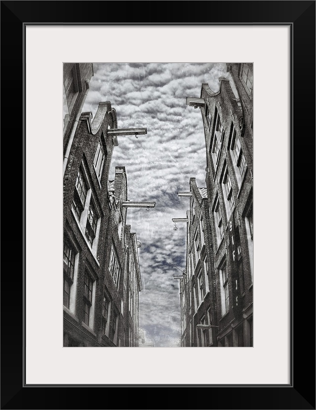 <p>A narrow street of Amsterdam, covered of clouds</p>
