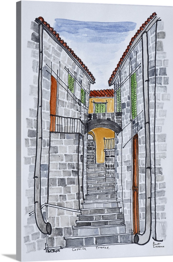 Narrow streets with 16th century granite buildings, Sartene, Corsica, France