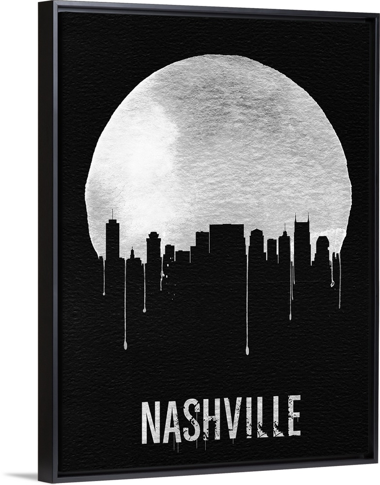<p>Contemporary watercolor artwork of the Nashville city skyline, in silhouette.</p>
