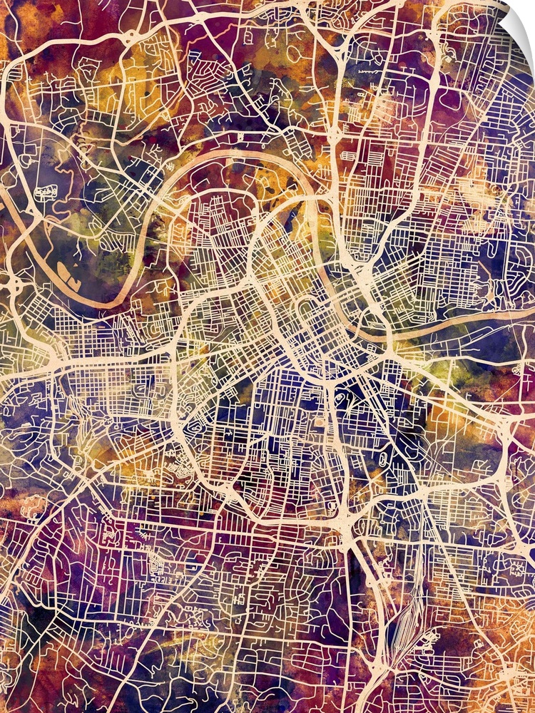 <p>Watercolor street map of Nashville, Tennessee, United States</p>