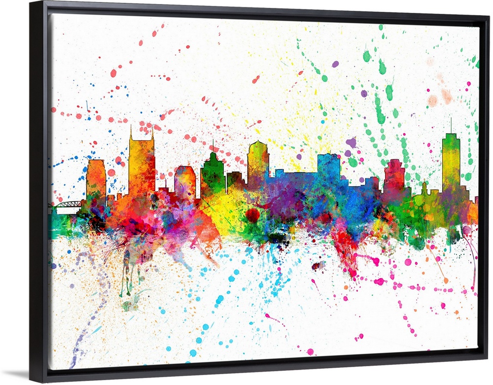 <p>Wild and vibrant paint splatter silhouette of the Nashville skyline.</p>