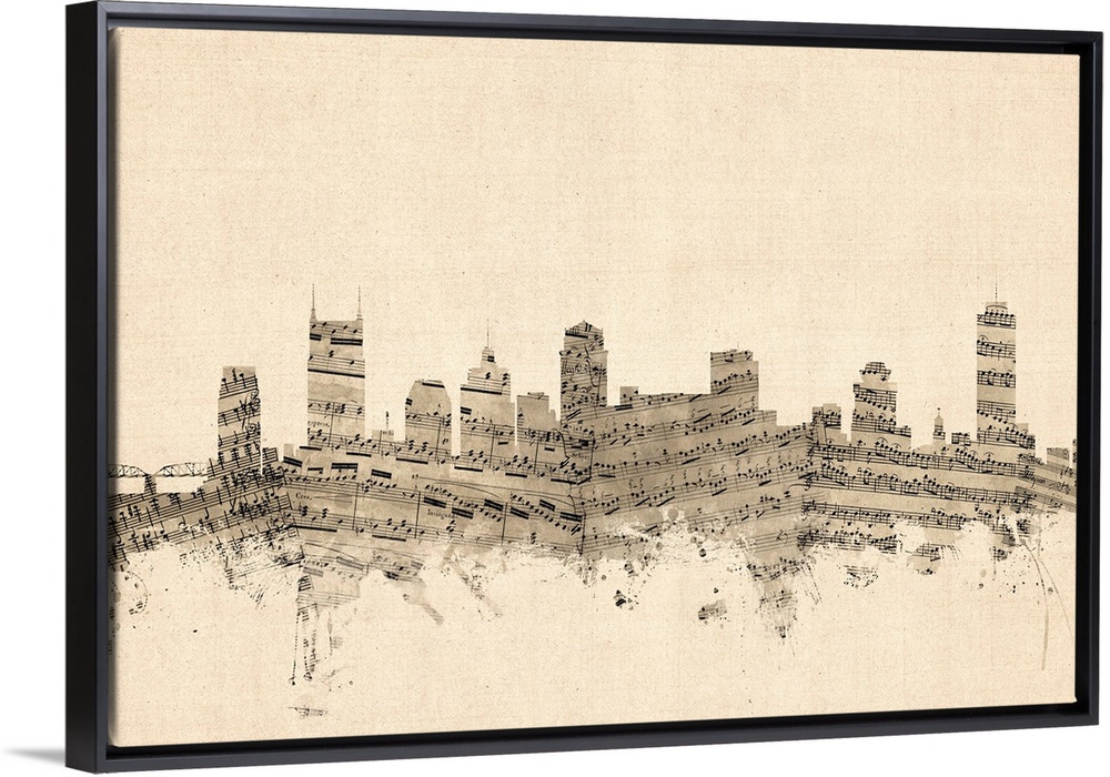 <p>Sheet Music art print of the skyline of Nashville, Tennessee, United States.</p>