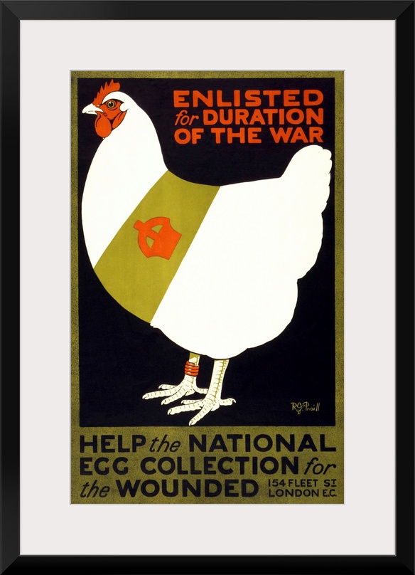 <p>'Enlisted for duration of the war. Help the national egg collection for the wounded.' English lithograph, 1915.</p>