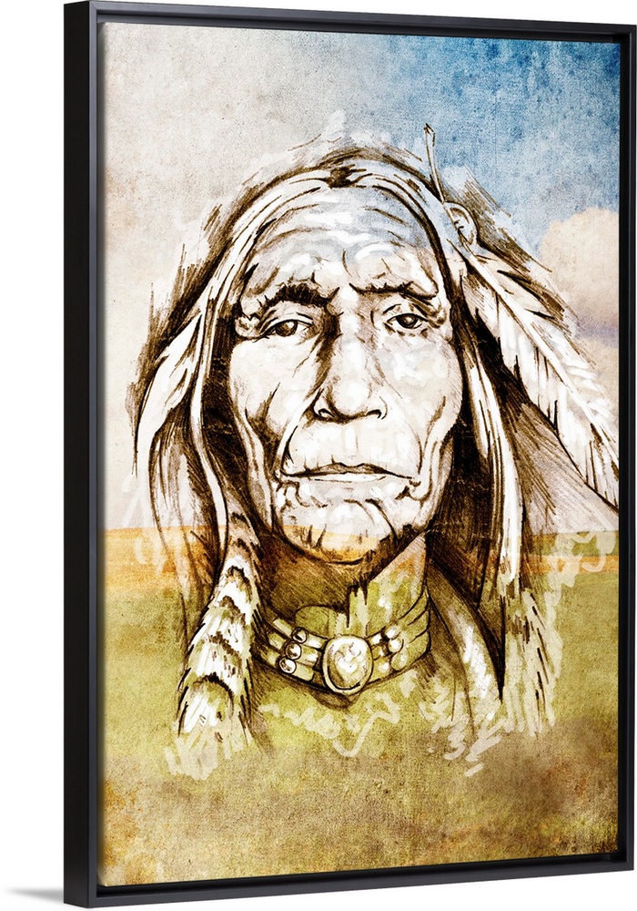 <p>Sketch of tattoo art, indian head over field background</p>