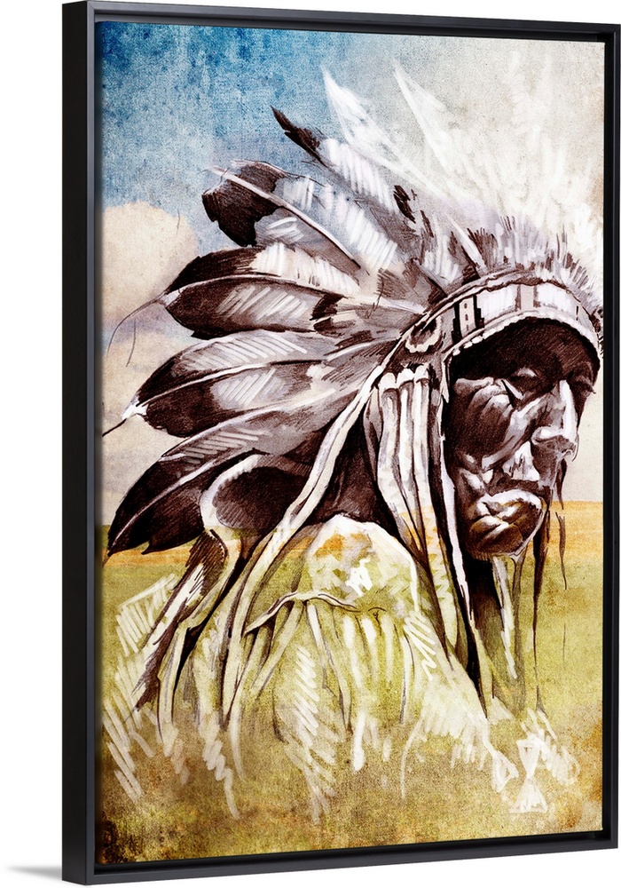 <p>Sketch of tattoo art, indian head over artistic background</p>