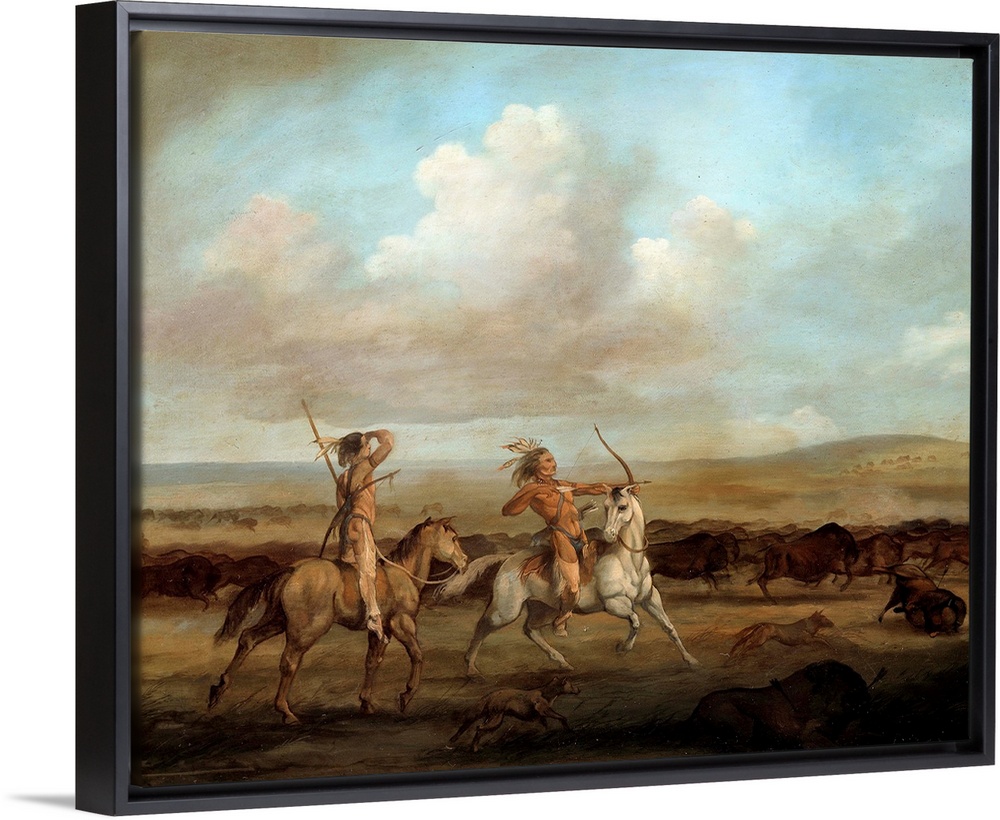 <p>Native Americans on horseback hunting bison. Painting by George Catlin (1794-1872), 19th century. Museum of the New World, La Rochelle, France</p>