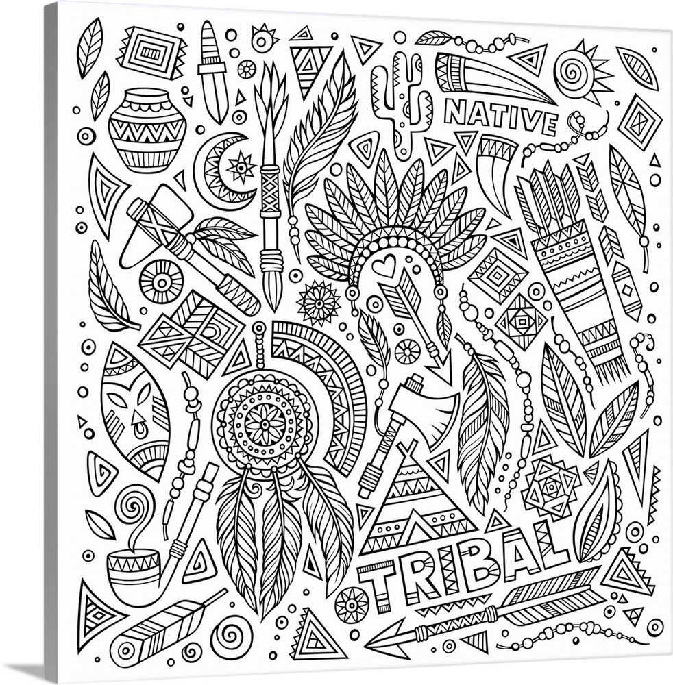 <p>An assortment of Native American-themed items, such as arrows and dreamcatchers. Perfect for Coloring Canvas.</p>