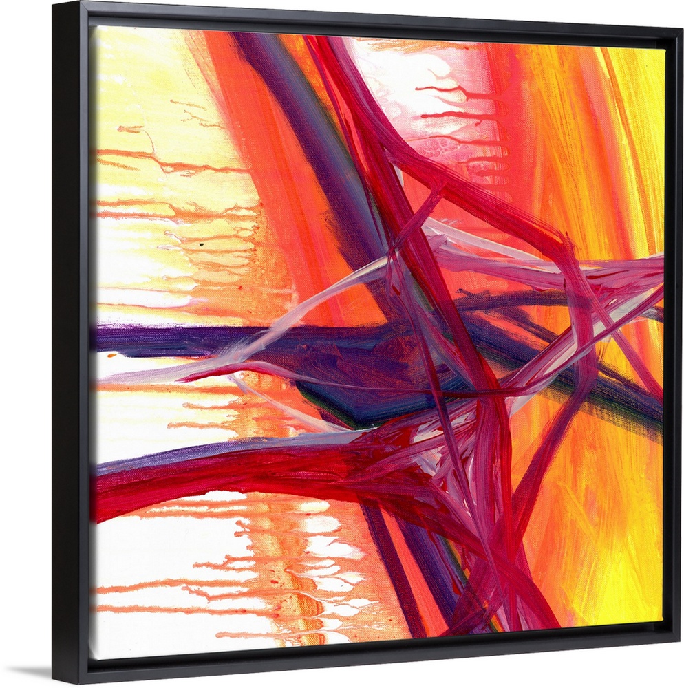 <p>Contemporary painting in fiery shades of red, orange, and purple, with the appearance of dripping paint.</p>