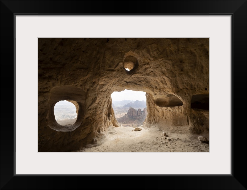 <p>Natural windows inside cave at the entrance of Daniel Korkor rock-hewn church, Gheralta Mountains, Tigray Region, Ethiopia, Africa</p>