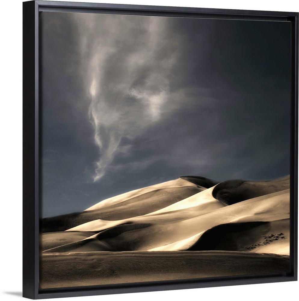 <p>Desert sand dunes casting deep shadows under a darkening sky, Colorado.</p>