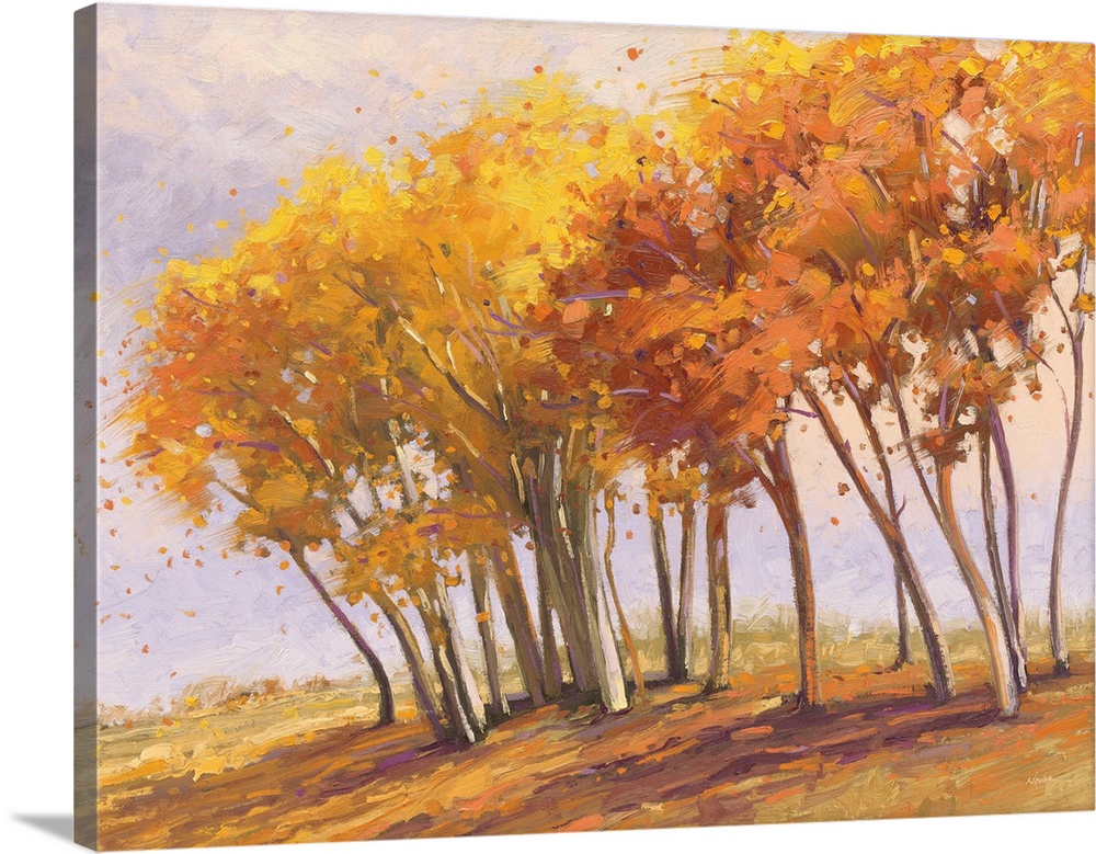 Art Contemporary Art Autumn Gold Fall Landscapes Trees Forest Shirley Novak Orange Wall Art
