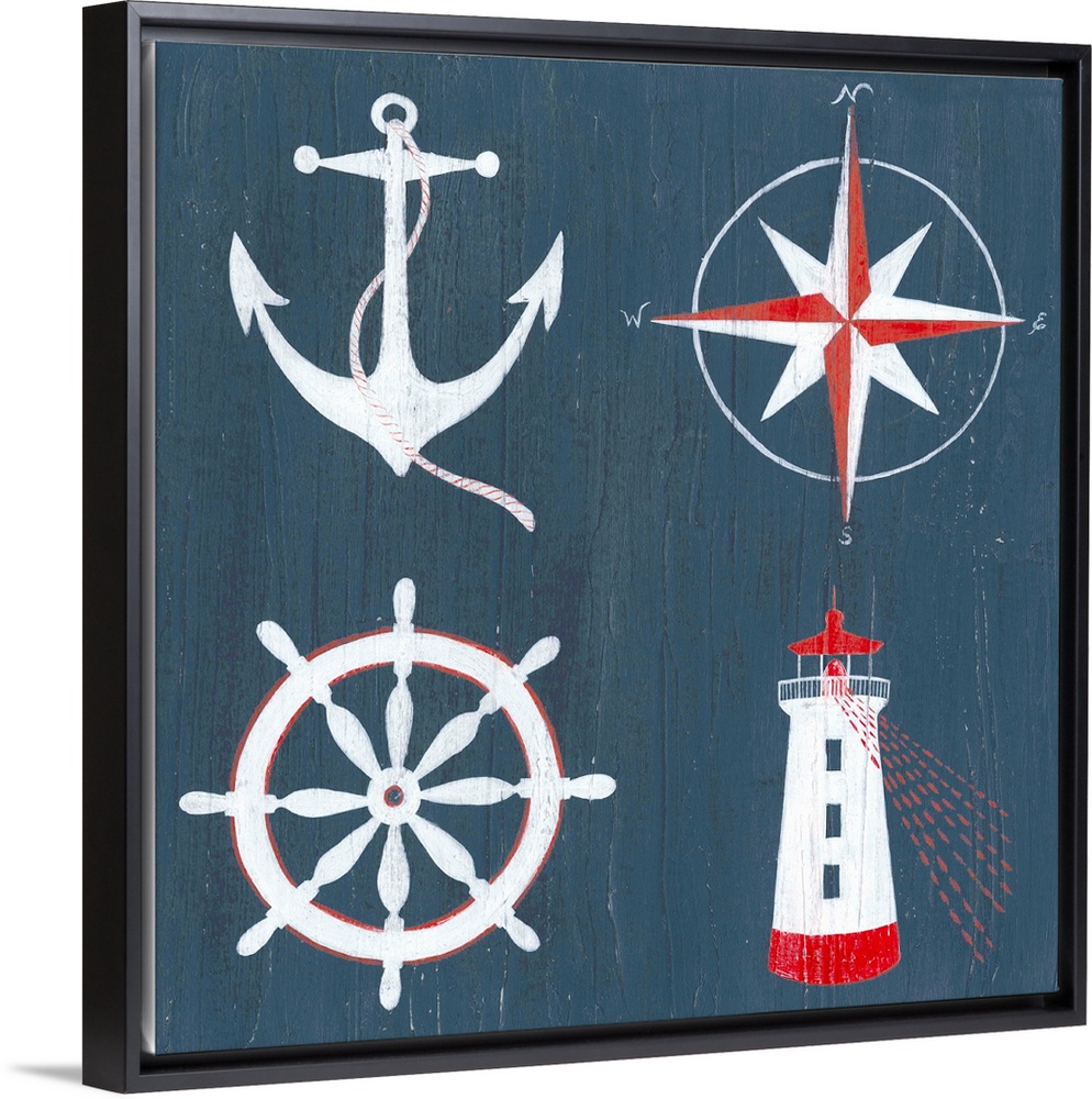 Art Beach House Décor Blue Wall Art Decorative Art Lighthouse Painting Grace Popp Transportation Boat