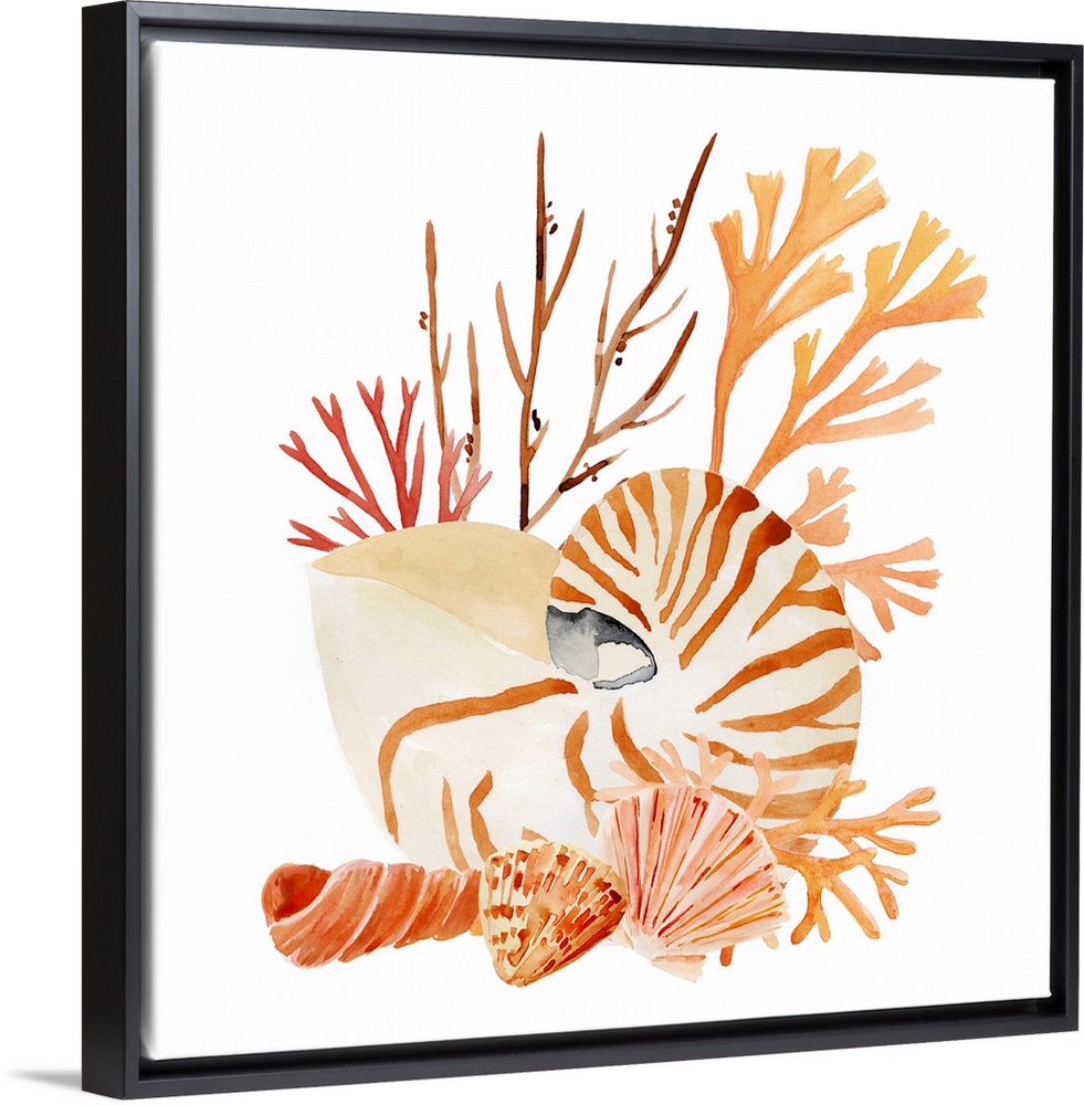 Art Beach House Décor Decorative Art Orange Wall Art Painting Shells Annie Warren Watercolor