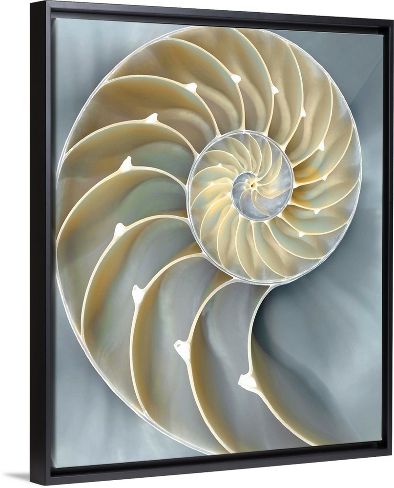 <p>Dreamy illustration of a nautilus shell in cream, tan, and blue hues.</p>