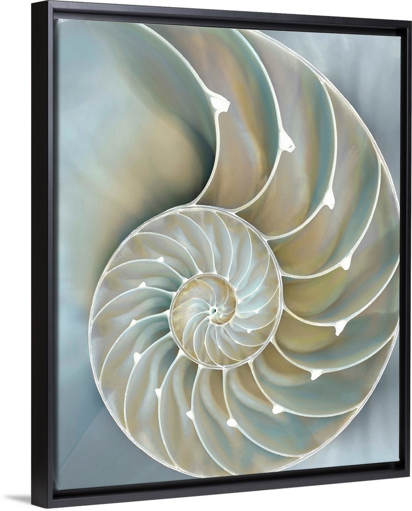 <p>Dreamy illustration of a nautilus shell in cream, tan, and blue hues.</p>